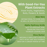 Exfoliates with alpha hydroxy acids, revealing healthier, younger-looking skin