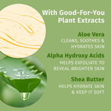 Exfoliates with alpha hydroxy acids, revealing healthier, younger-looking skin
