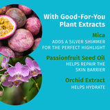 Illuminates skin with a silver shimmer thanks to ethically sourced mica, a naturally occurring mineral