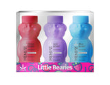 A value of $24, yours for $14.99. Enjoy the berry-infused goodness of our Little Bearies Gift Set. This travel-sized body lotion trio is packed with hydrating berry extracts and fruity scents. Set includes StrawBeary, BlueBeary, and Acai Beary. Each, 2-ounce screw-top bottle.