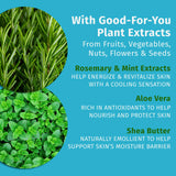 Water/Aqua/Eau, Isopropyl Palmitate, Butylene Glycol, Butyrospermum Parkii (Shea) Butter, Glycerin, Dimethicone, Sorbitan Stearate, Glyceryl Stearate, PEG-100 Stearate, Fragrance (Parfum), Cannabis Sativa Seed Oil, Mentha Piperita (Peppermint) Leaf Extract, Rosmarinus Officinalis (Rosemary) Leaf Extract, Helianthus Annuus (Sunflower) Seed Oil, Aloe Barbadensis Leaf Juice, Cucumis Sativus (Cucumber) Fruit Extract, Leuconostoc/Radish Root Ferment Filtrate, Phenoxyethanol, Cetyl Alcohol, Stearic Acid, Polysorbate 40, Nylon-12, Carbomer, Chlorphenesin, Aminomethyl Propanol, Ethylhexylglycerin, Trisodium Ethylenediamine Disuccinate, Benzyl Benzoate, Yellow 5 (CI 19140), Ascorbic Acid, Tocopheryl Acetate, Blue 1 (CI 42090), Green 3 (CI 42053), Citric Acid, Phospholipids, Pantothenic Acid, Tocopherol, Potassium Sorbate, Sodium Benzoate, Linalool, Limonene, Geraniol, Citronellol