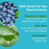 Enjoy the berry-infused goodness of our BlueBeary Body Moisturizer. The body lotion is infused with a juicy scent and real blueberry extract. 11.7-ounce flip-top bottle.