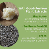 Active Ingredients: Avobenzone 3% Sunscreen, Homosalate 3% Sunscreen, Octocrylene 4% Sunscreen Inactive Ingredients: Petrolatum, Cetearyl Alcohol, Cetyl Alcohol, Caprylic/Capric Triglyceride, Polyester-8, Microcrystalline Wax, Dimethicone, Propanediol, Flavor, Cannabis Sativa Seed Oil, Helianthus Annuus (Sunflower) Seed Oil, Butyrospermum Parkii (Shea) Butter, Cocos Nucifera (Coconut) Oil, Aloe Barbadensis Leaf Extract, Ananas Sativus (Pineapple) Fruit Extract, Cucumis Melo (Melon) Fruit Extract, Persea Gratissima (Avocado) Oil, Simmondsia Chinensis (Jojoba) Seed Oil, Caprylyl Glycol, Stevioside, Tocopherol, Glycine Soja (soybean) Oil, Phenoxyethanol, Isopentyldiol, Limonene, Benzyl Benzoate, Panthenol, Tetrahexyldecyl Ascorbate, Tocopheryl Acetate, Citric Acid