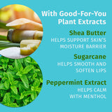 Petrolatum, Caprylic/Capric Triglyceride, Butyrospermum Parkii (Shea) Butter, Cetyl Alcohol, Coco-Caprylate/Caprate, Synthetic Wax, Propanediol, Flavor (Aroma), Cannabis Sativa Seed Oil, Aloe Barbadensis Leaf Extract, Mentha Piperita (Peppermint) Oil, Saccharum Officinarum (Sugarcane) Extract, Vanilla Planifolia Fruit Extract, Panthenol, Tocopheryl Acetate, Helianthus Annuus (Sunflower) Seed Oil, Sodium Saccharin, Caprylyl Glycol, Glycine Soja (Soybean) Oil, Tocopherol, Phenoxyethanol, Isopentyldiol, Ascorbic Acid, Citric Acid