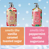 Our NEW holiday limited-edition lotions, in a ready-to-give set! Treat them to a full-size of cheery Crushed Peppermint Sugar and cozy Toasted Vanilla Caramel. Each, 17 fluid ounces in a pump bottle.