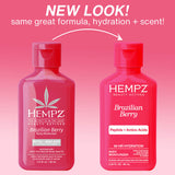 Help improve skin’s firmness, texture, and hydration with our Brazilian Berry Herbal Body Moisturizing Lotion with Peptides + Amino Acids. This firming body lotion helps promote beautiful skin and imparts a sophisticated scent. 2.25 fluid ounces in a flip-top bottle.